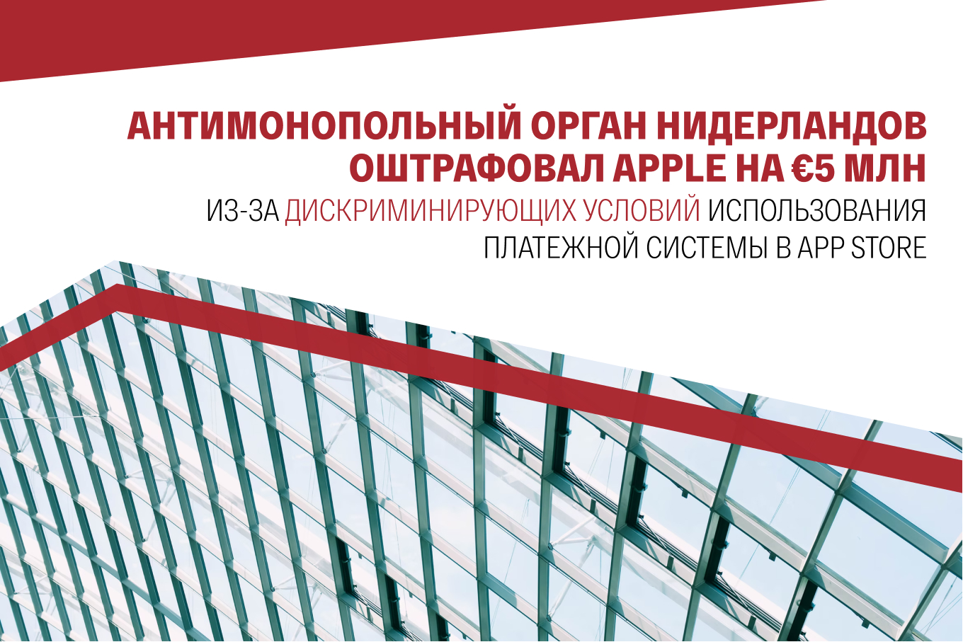 АНТИМОНОПОЛЬНЫЙ ОРГАН НИДЕРЛАНДОВ ОШТРАФОВАЛ APPLE НА €5 МЛН ИЗ-ЗА ДИСКРИМИНИРУЮЩИХ УСЛОВИЙ ИСПОЛЬЗОВАНИЯ ПЛАТЕЖНОЙ СИСТЕМЫ В APP STORE.