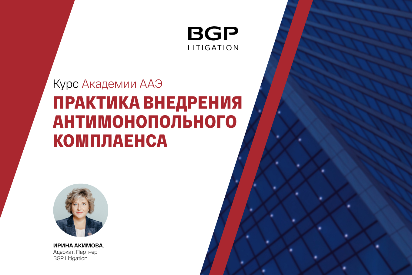 Теоретическая часть курса доработана, а практическая стала еще интереснее и полезнее! Спикером выступит партнер BGP Litigation и Председатель оргкомитета Академии ААЭ Ирина Акимова.