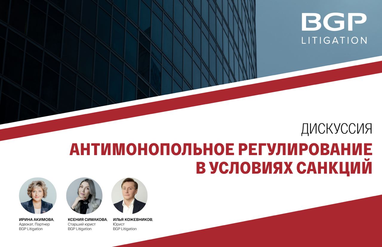 В ходе дискуссии партнер, руководитель антимонопольной практики BGP Litigation Ирина Акимова, старший юрист практики Ксения Симакова и юрист Илья Кожевников обсудили, каким будет антимонопольное регулирование в условиях санкций и разобрали вопросы: