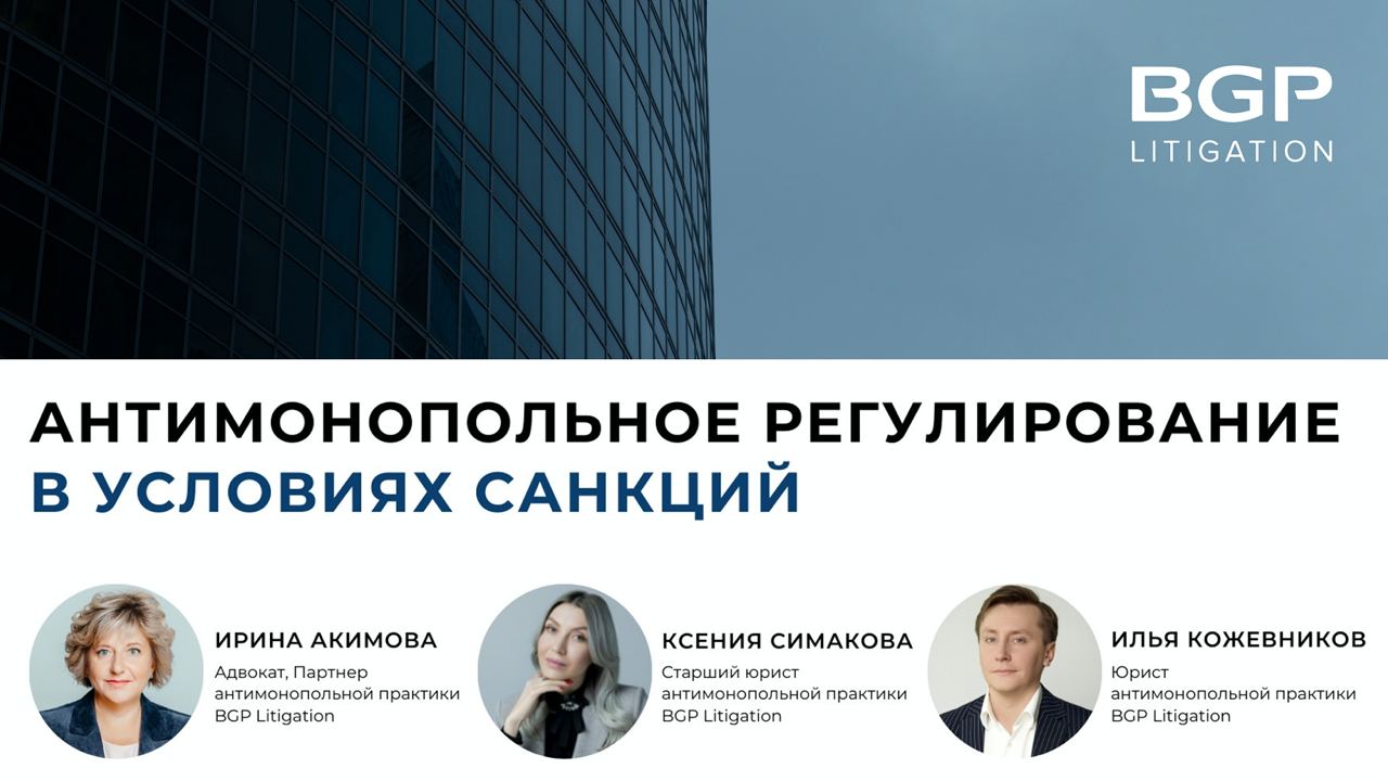 В ходе дискуссии партнер, руководитель антимонопольной практики BGP Litigation Ирина Акимова, старший юрист практики Ксения Симакова и юрист Илья Кожевников обсудили, каким будет антимонопольное регулирование в условиях санкций и разобрали вопросы: