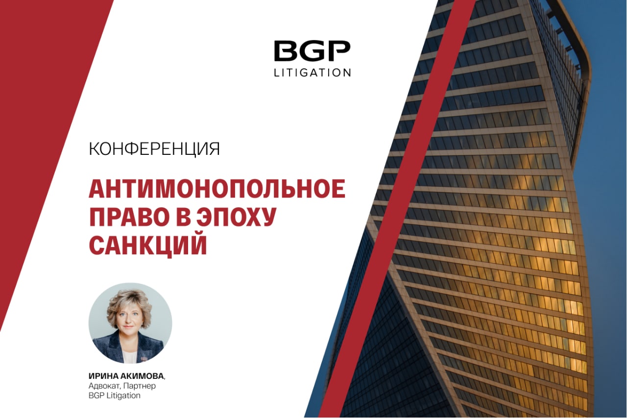 16 июня 2022 года в Москве состоится конференция «Антимонопольное право в эпоху санкций», организованная правовым порталом Право.ru. Спикером мероприятия станет Ирина Акимова, партнер, руководитель антимонопольной практики BGP Litigation, Председатель генерального совета Ассоциации антимонопольных экспертов. Ирина выступит в секции «Современные вызовы российской экономики и антимонопольное законодательство», где рассмотрит тему санкций и «экономической блокады» и расскажет, в каком состоянии окажется конкуренция на национальном рынке после введения ограничительных мер в отношении РФ и ухода с рынка крупных иностранных компаний.