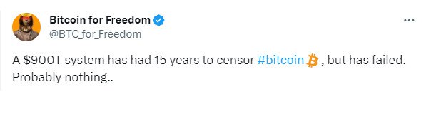 💬 "У системы стоимостью 900 трлн долларов было 15 лет на цензуру Биткоина, но она потерпела неудачу. Наверное, это совсем ничего не значит..."