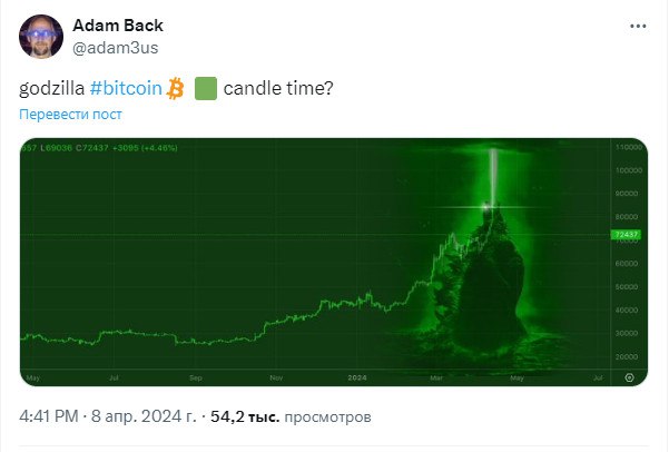 🫢 Адам Бэк считает, что для биткоина пришло время годзилла-свечи!