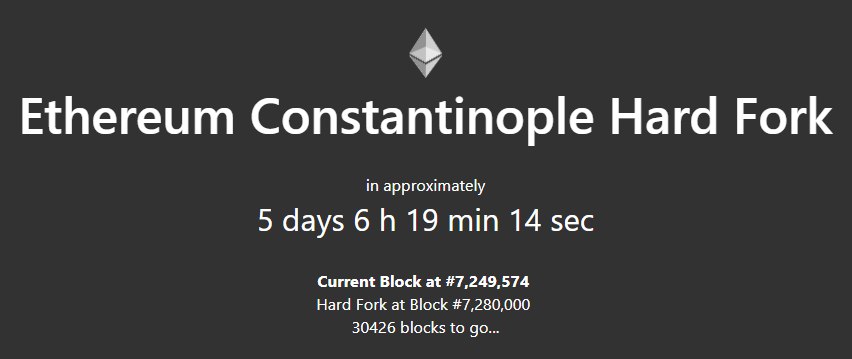 До заветного блока #7280000 остаётся меньше пяти часов. Именно на этом блоке должен произойти долгожданный хардфорк сети эфира #Constantinople. Именно с этого момента начнётся плавный переход эфира на PoS, который обещают закончить до конца этого года.