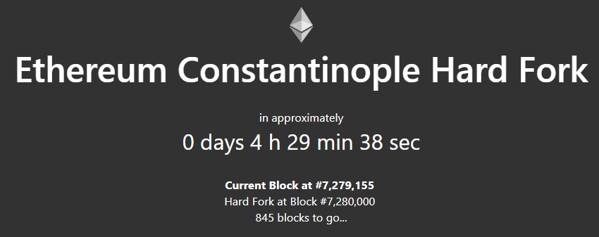 До заветного блока #7280000 остаётся меньше пяти часов. Именно на этом блоке должен произойти долгожданный хардфорк сети эфира #Constantinople. Именно с этого момента начнётся плавный переход эфира на PoS, который обещают закончить до конца этого года.