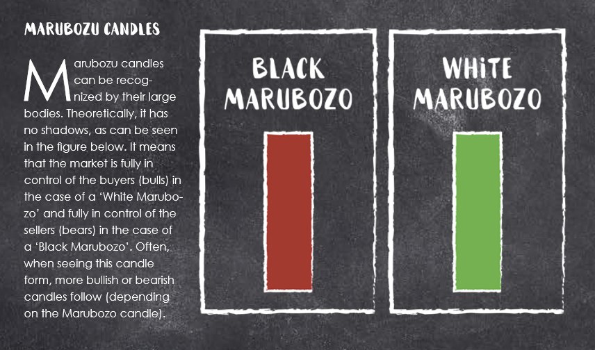 Как правило, такие свечи показывают силу продавцов или покупателей и за ними следуют свечи, продолжающие направление движения, заданное такими крупными свечками "Марубозо". Такие свечи задают тренд.