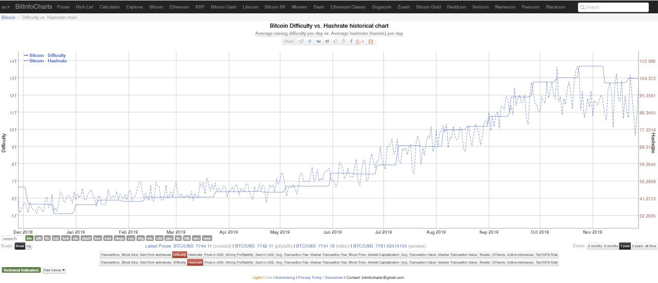 График можно посмотреть и "покрутить" по ссылке: https://bitinfocharts.com/comparison/difficulty-hashrate-btc.html#1y