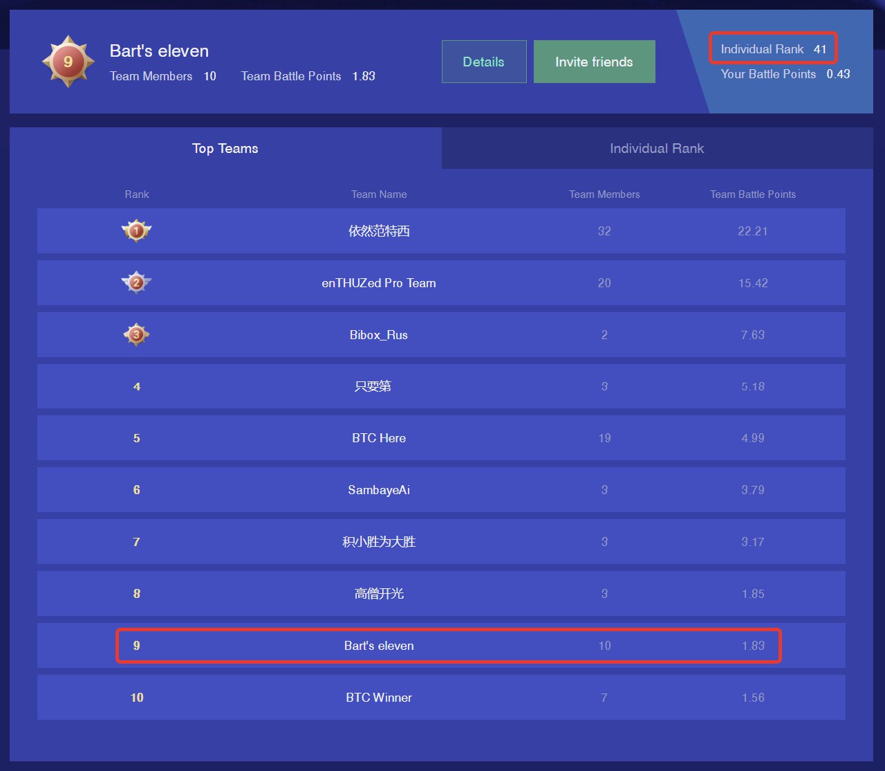 На сегодня в команде 10 человек и регистрация в конкурсе всё ещё открыта (продлится до 10-го января), а сам конкурс закончится 22-го. То есть любой желающий может присоединиться и помочь команде подняться выше в турнирной табличке и выиграть реальные денежные призы!