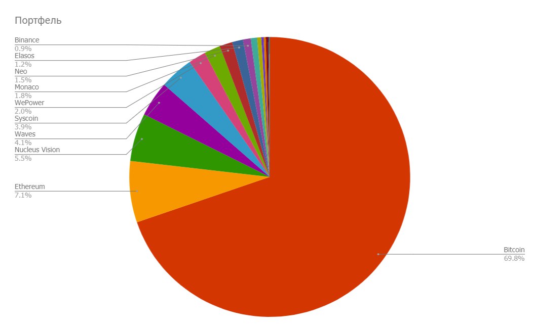 Вот как выглядит мой криптовалютный портфель на данный момент.