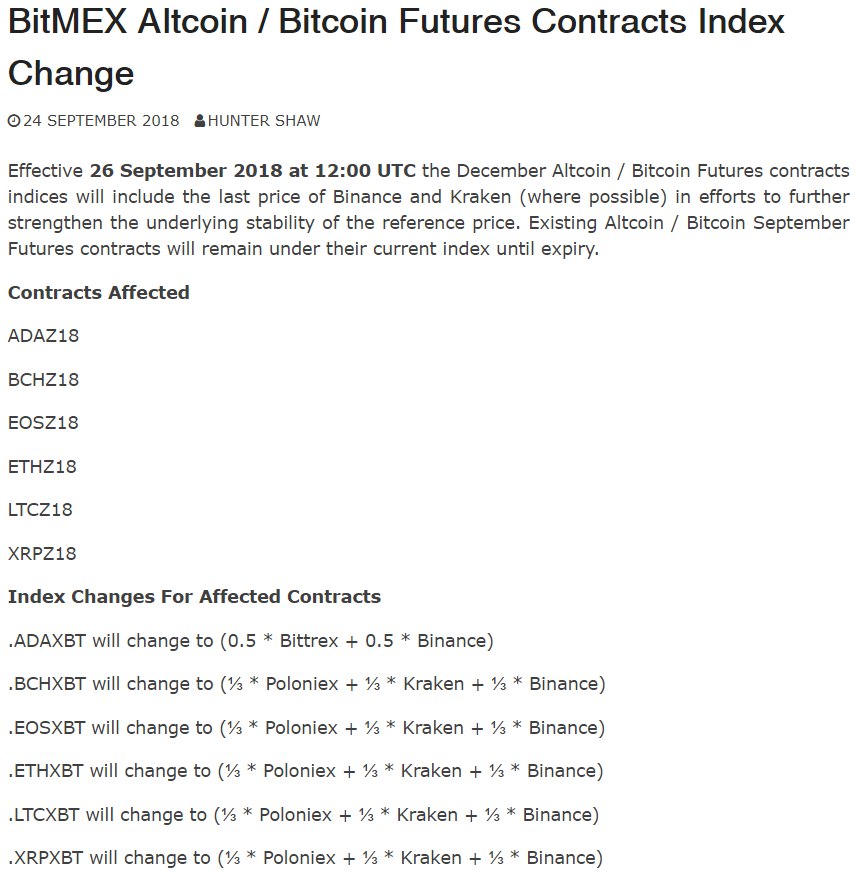 Начиная с 26-го сентября все индексы на декабрьские фьючерсы по альткоинам будут дополнительно подкреплены ценой с Binance и Kraken. Сентябрьские фьючерсы это не затронет до их экспирации 28-го сентября.