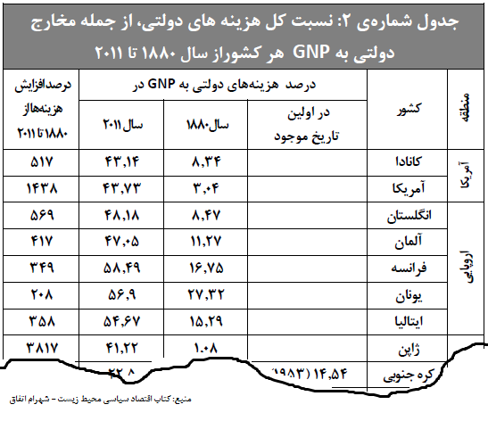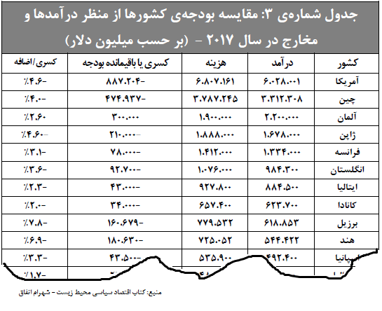 روند کسری بودجهی دولت ها ناشی از افزایش مخارج شان به امری عادی بدل شدهاست.(جدول ۳)