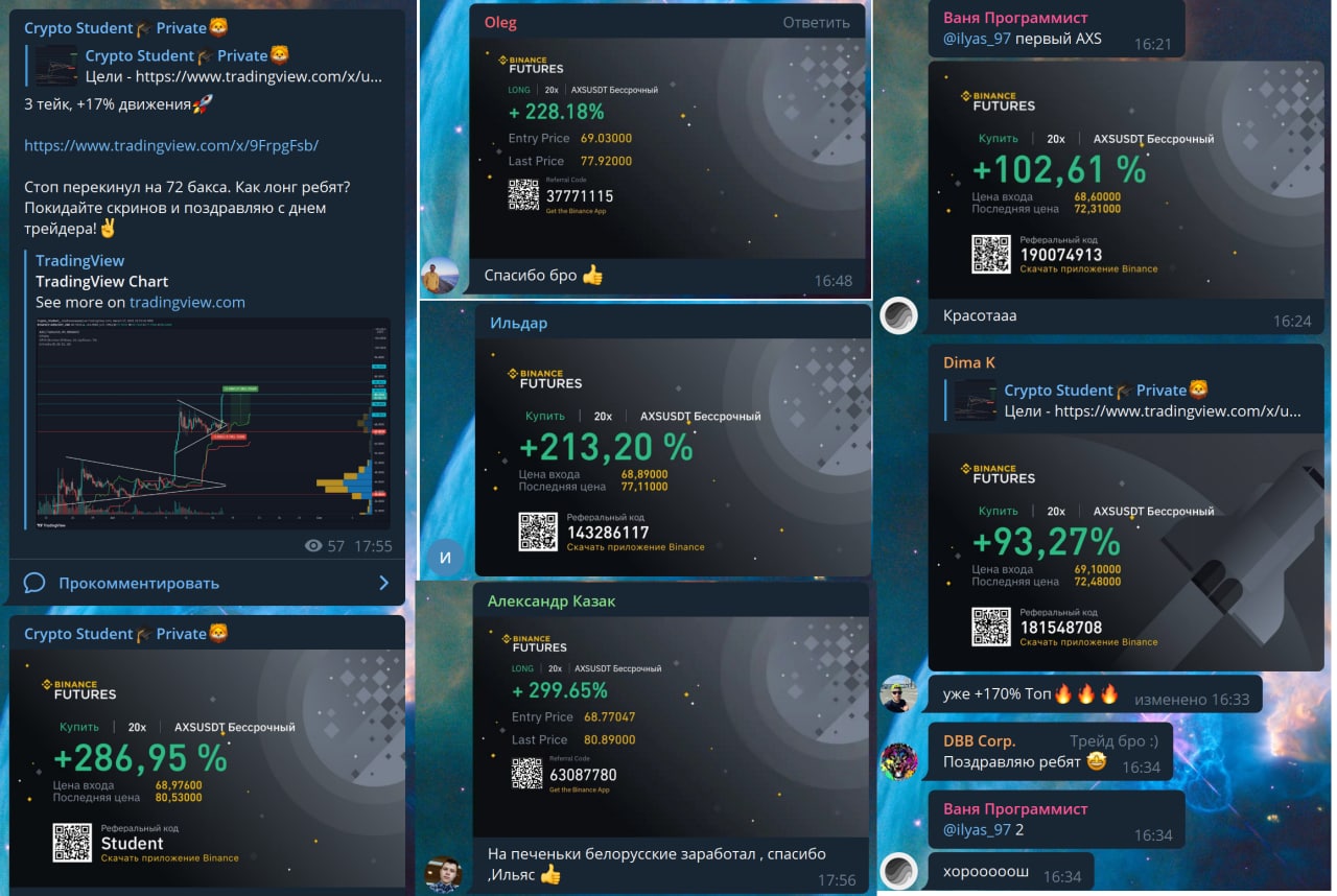 Сегодня как раз таки поздравил ребят с приватной группы хорошим сигналом по #AXS, который дал за пару часов 3 тейка (+18% движения со входа)✌️
