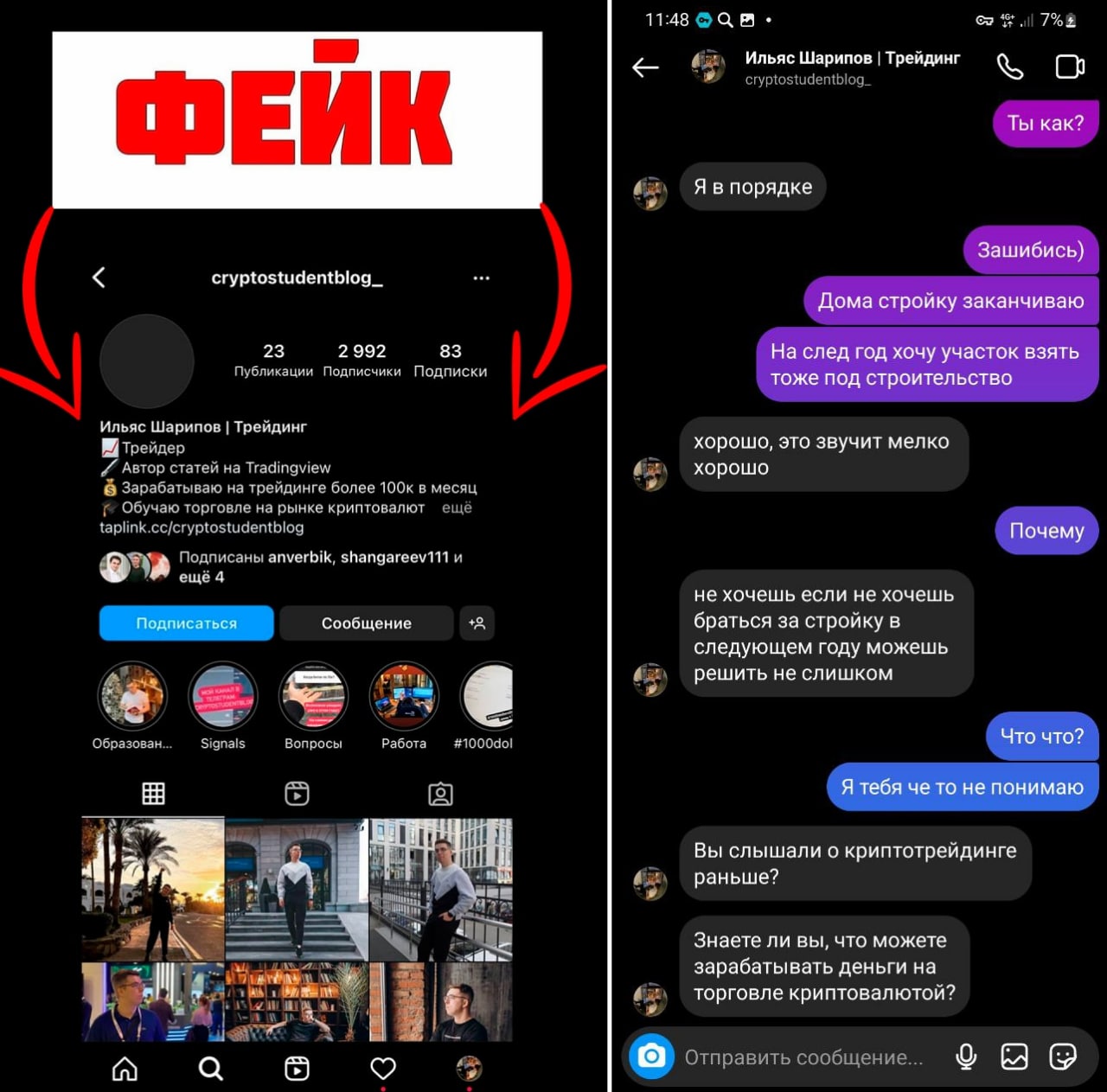 ⭕️Рассказал в своём сторис - https://instagram.com/stories/cryptostudentblog/2908189184052458277?utm_source=ig_story_item_share&igshid=Y2ZmNzg0YzQ=, там можно перейти на страницу мошенника, заблокировать его и кинуть жалобу.
