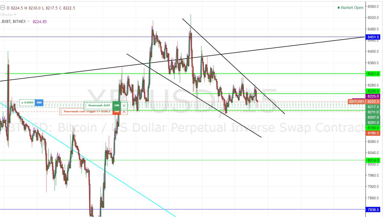 Взял немного лонга по 8217.5$, так как держат уровень 8200$.