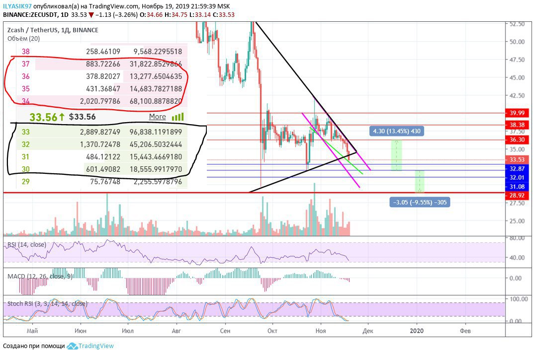 3️⃣ Приблизились к глобальной поддержке в 30$. Хорошая поддержка образовалась на Binance.