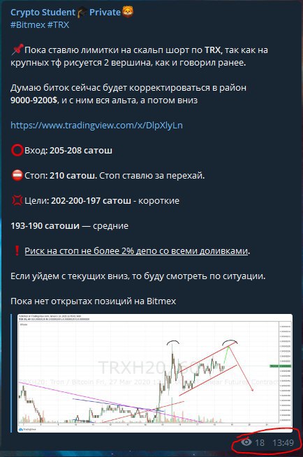🔥Так же писал днем в приватном канале о шорте TRX по 205-208 сатош, как раз там сформируется и подтвердиться восходящий канал и 2 вершина на крупных тф