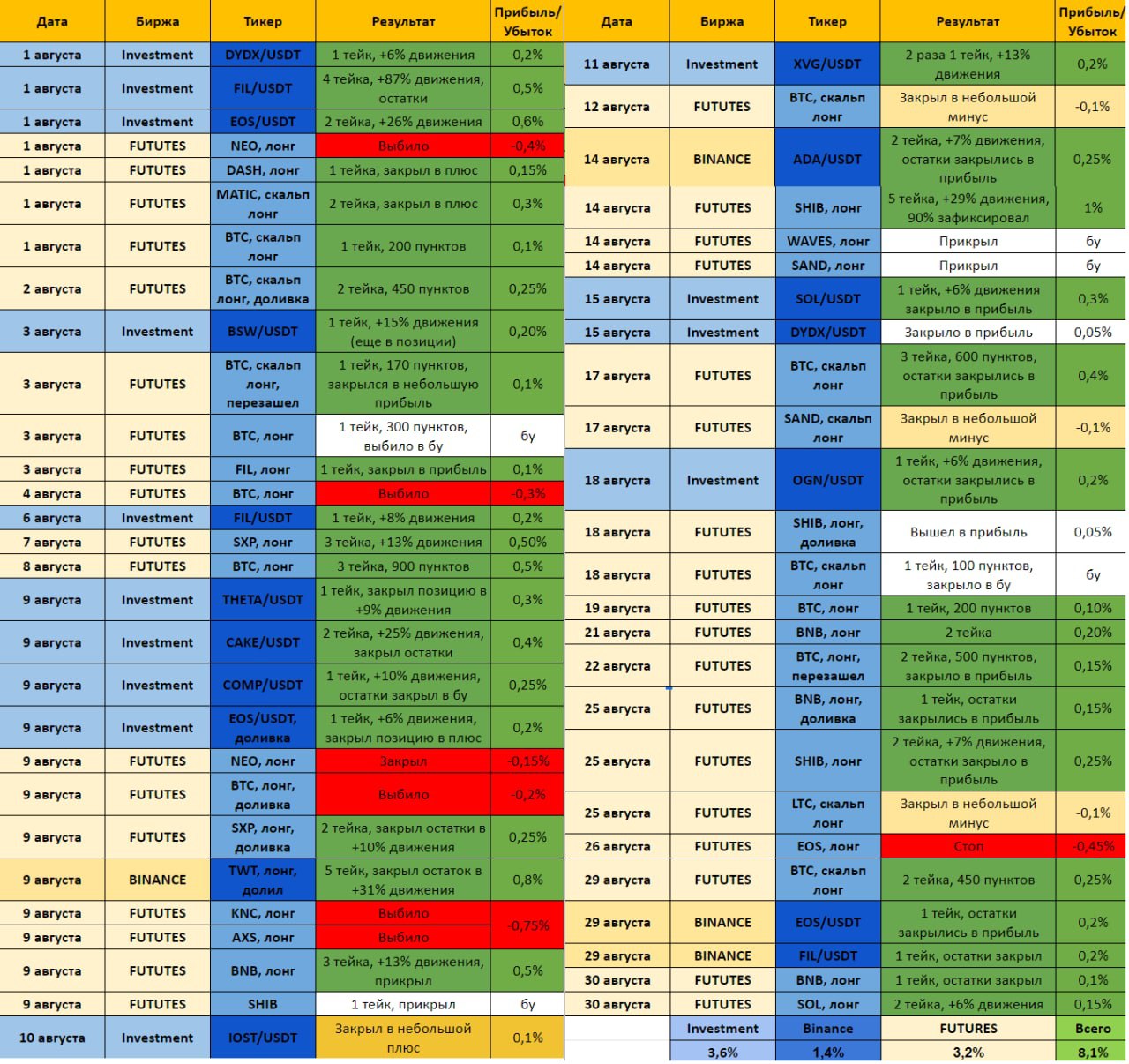 🗓По традиции хочу предоставить вам отчет работы нашей приватной группы, с 1 по 31 августа!