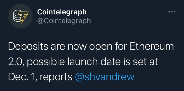 https://cointelegraph.com/news/ethereum-2-0-begins-launch-process-as-deposit-contract-goes-live