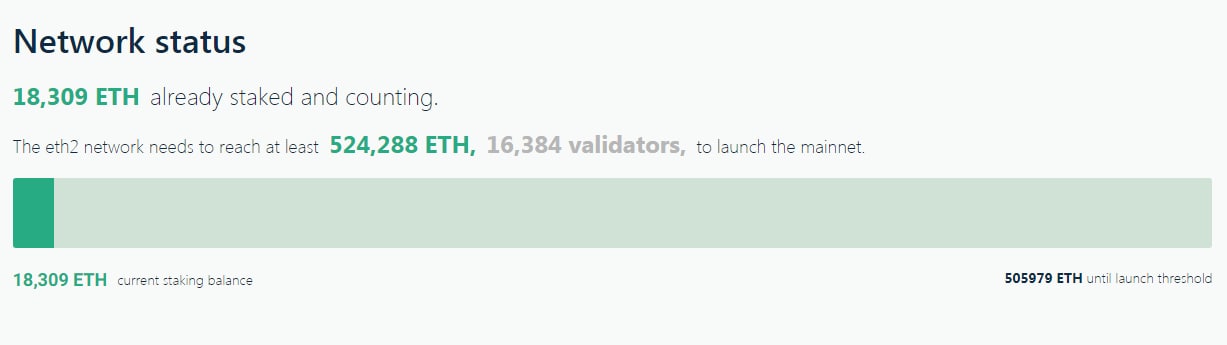 Для успешного запуска ETH 2.0 нужно чтобы пользователи застейкали 524 288 ETH до 1 декабря 2020