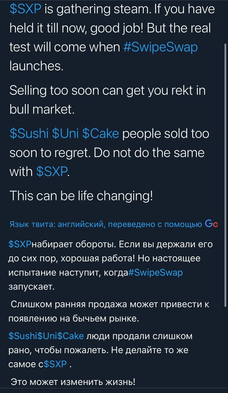 А суть инсайда в том что пару дней назад на блокчейне появилась папка Sxp-Swap-BSC. После чего и CZ и CEO Swipe тонко подтвердили предстоящее событие. 🐅