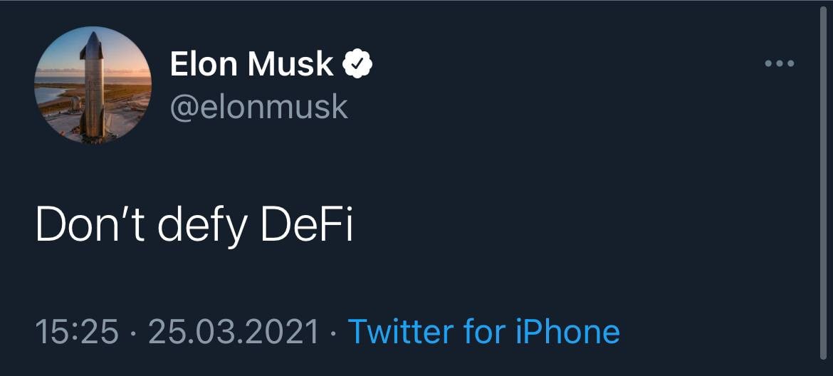 Тут Илон Маск все по факту т.к самая большая проблема DeFi это возможность их легко взламывать, хоть уже и есть проекты которые пытаются решить эту проблему.