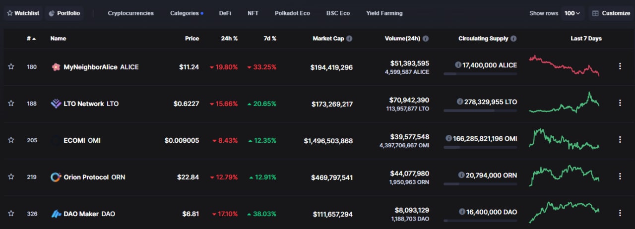 Coinmarketcap добавили новую страничку с реализованными проектами на инвестиционной площадке DAO
