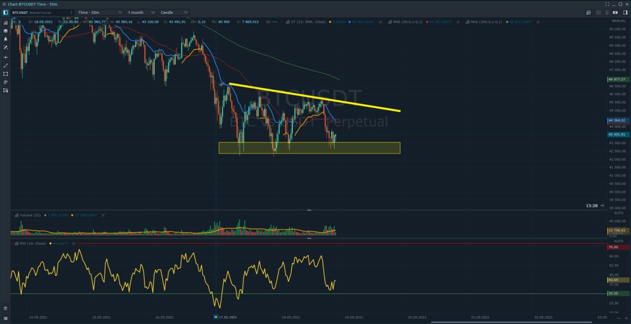 Ровно ударили в глобальную трендовую, и ретестнули прошлый уровень проторговки на дневке По мне так зона 38000-30000 интересна для набора на споте