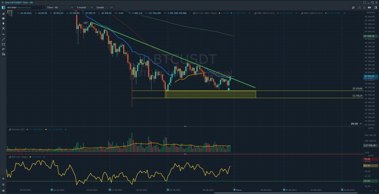 Но учитывая мое ожидание уже новой зоны флета на пару месяцев как минимум, то этот сетап легко можно ломать, как минимум движением на 39000-42000