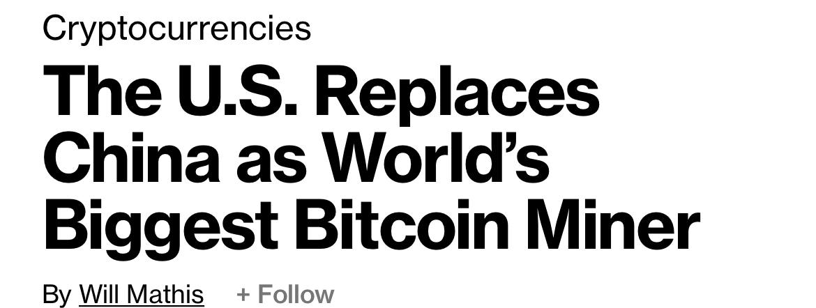 Bloomberg передаёт, что теперь США крупнейший майнер биткойнов в мире