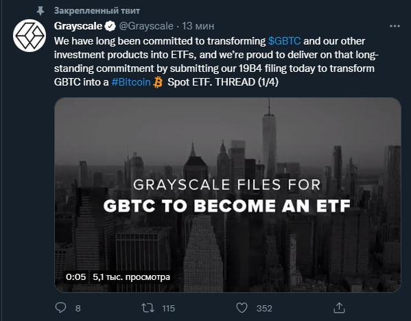 🔥 Grayscale подала заявку на преобразование своего биткоин-траста в ETF