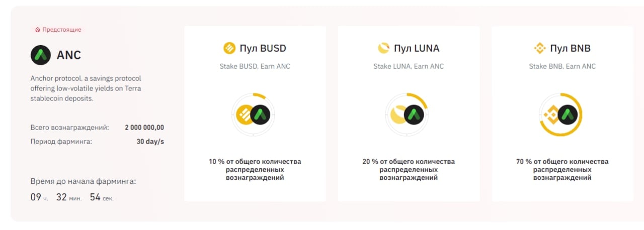 Binance представила 29-ый проект на Binance Launchpool Anchor Protocol (ANC).