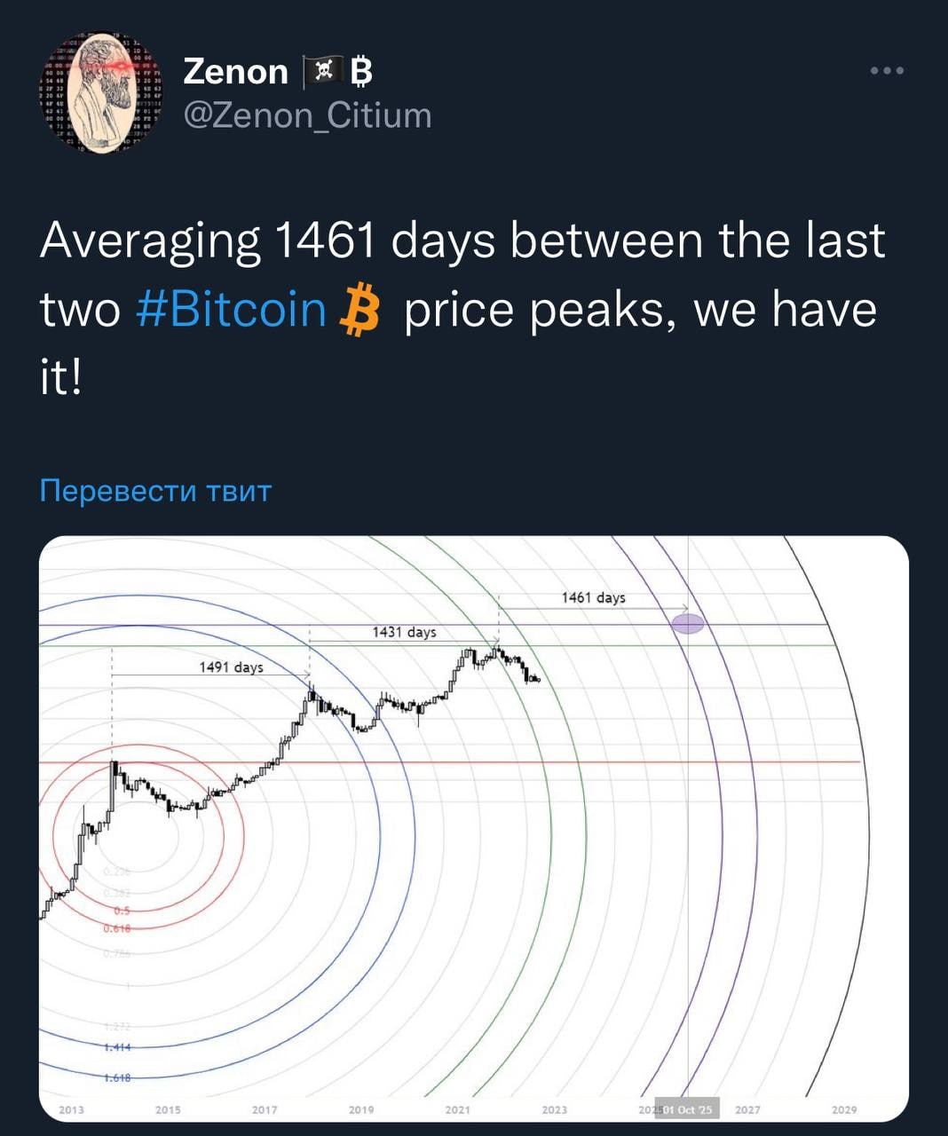 До следующего ценового пика биткоина у нас, возможно, есть еще почти 3 года. По крайней мере, в предыдущих двух циклах это расстояние было, в среднем 1461 день