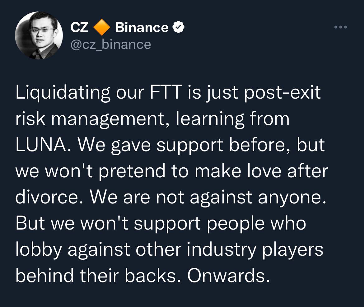 А далее уже «залетает» CZ, с твитом о продаже остатков FTT