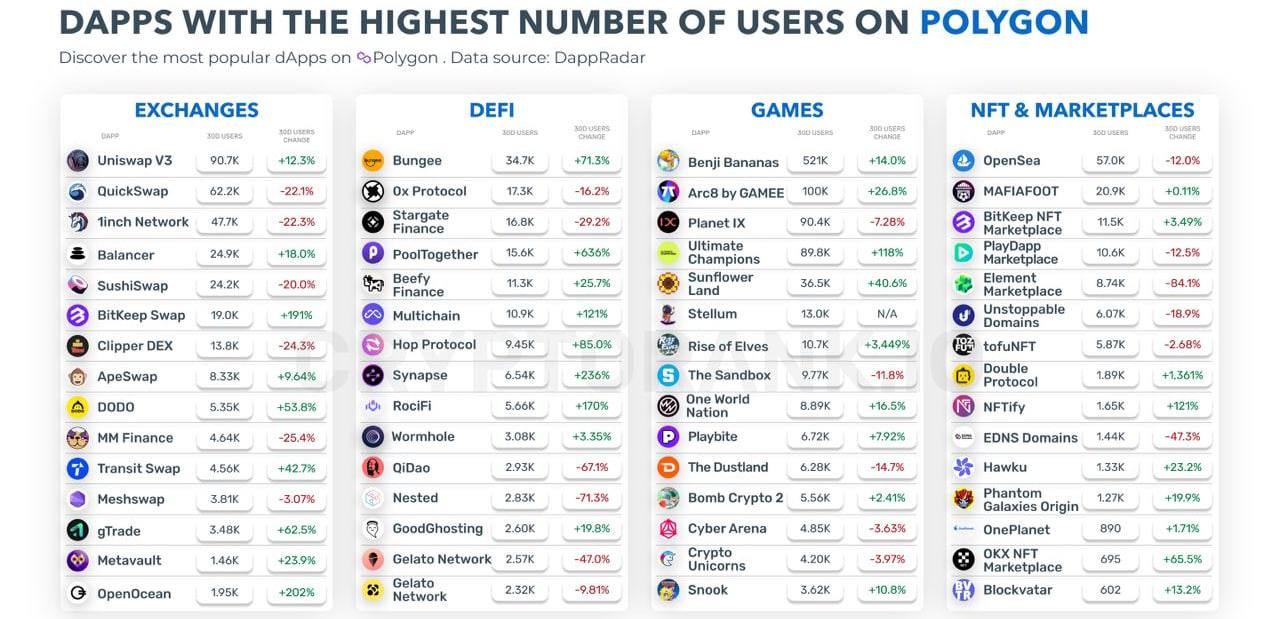 Децентрализованные приложения (dApps) с самым высоким количеством юзеров на Polygon(MATIC)
