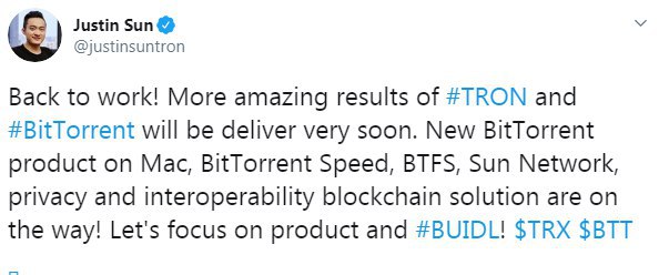 Justin Sun обещает в скором времени предоставить результаты по BitTorrent Speed, BTFS, Sun Network и BitTorrent на Mac