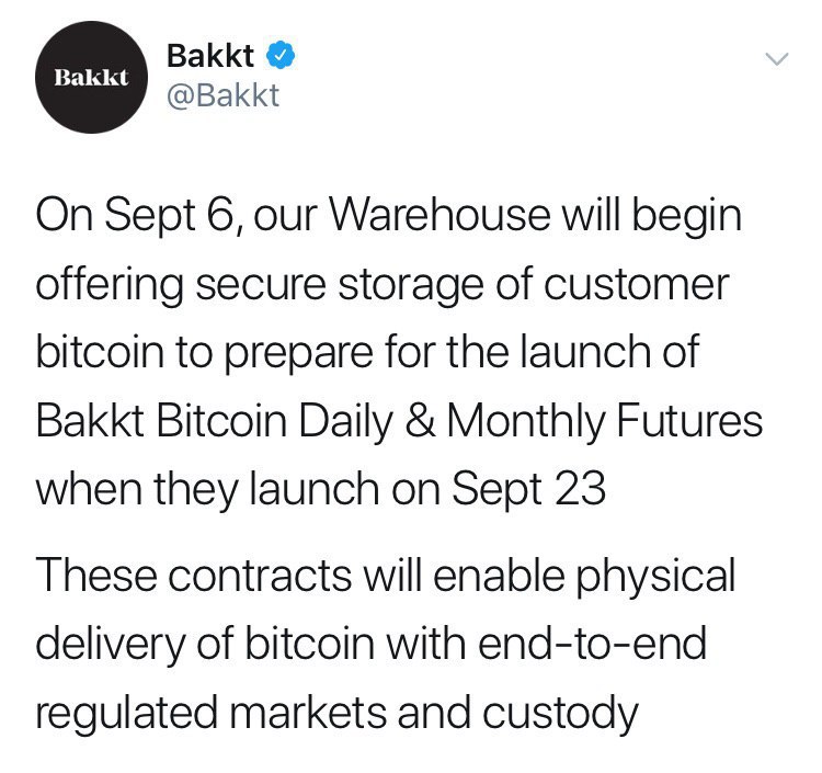 Bakkt с 6 сентября откроет возможность безопасного хранения активов, перед самим запуском фьючерсов 23 сентября