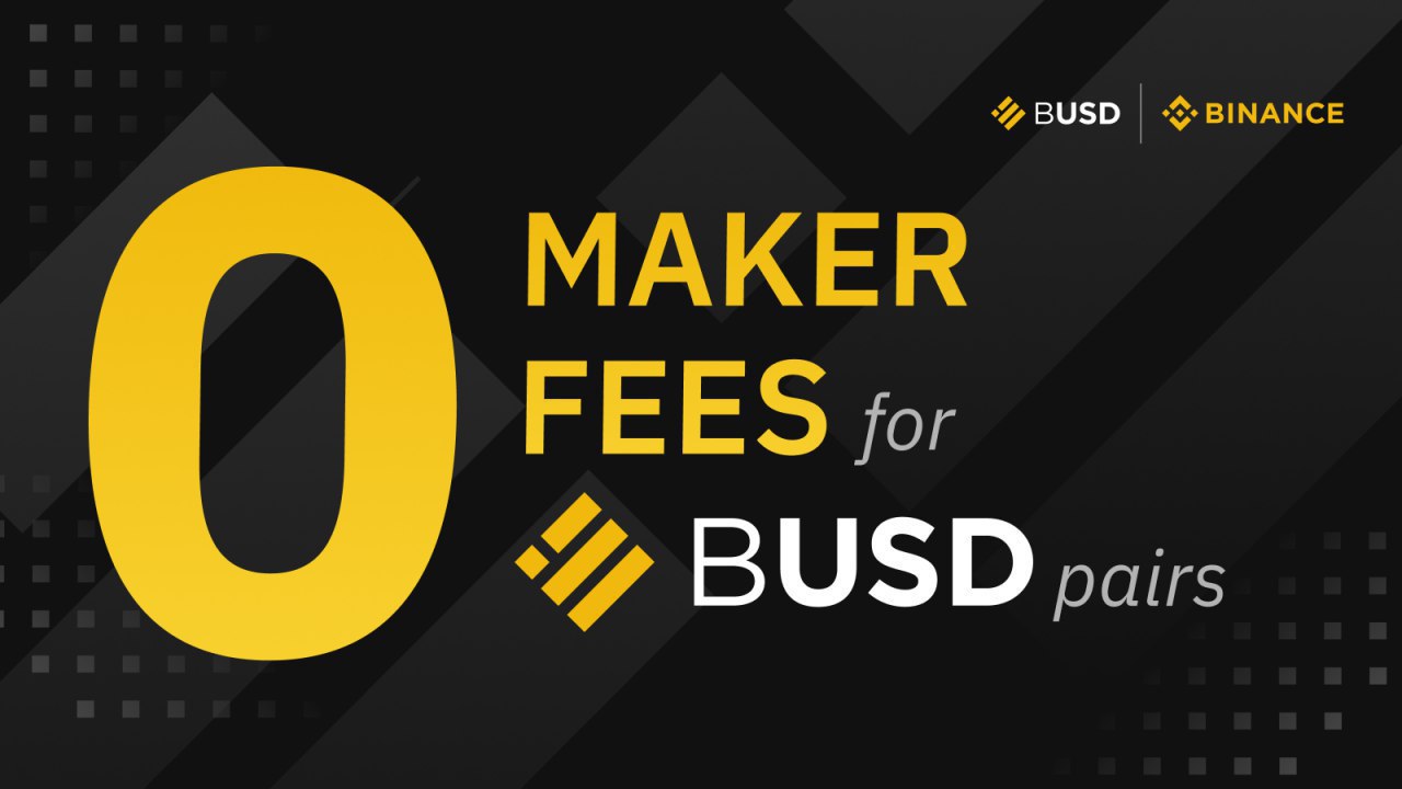 Binance до конца года объявил о нулевой комиссии в торгах в паре со стейбл-койном BUSD, при условии что сделка будет осуществляться через лимитный ордер, размещая его в стакане ордеров