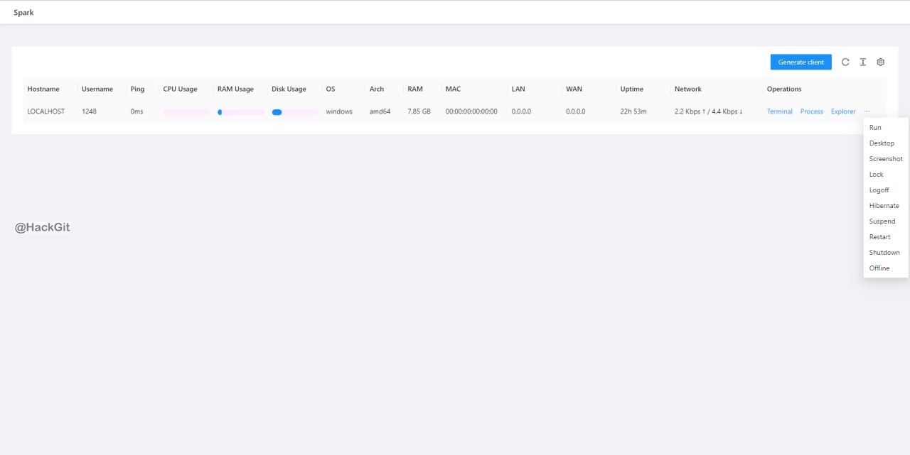 Spark is a free, safe, open-source, web-based, cross-platform and full-featured RAT (Remote Administration Tool) that allow you to control all your devices via browser anywhere.