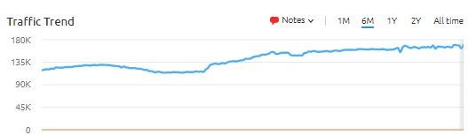 5️⃣ Теперь в Семраше в диаграмке по трафику за 6 мес идет кривая по дням. Была по месяцам.