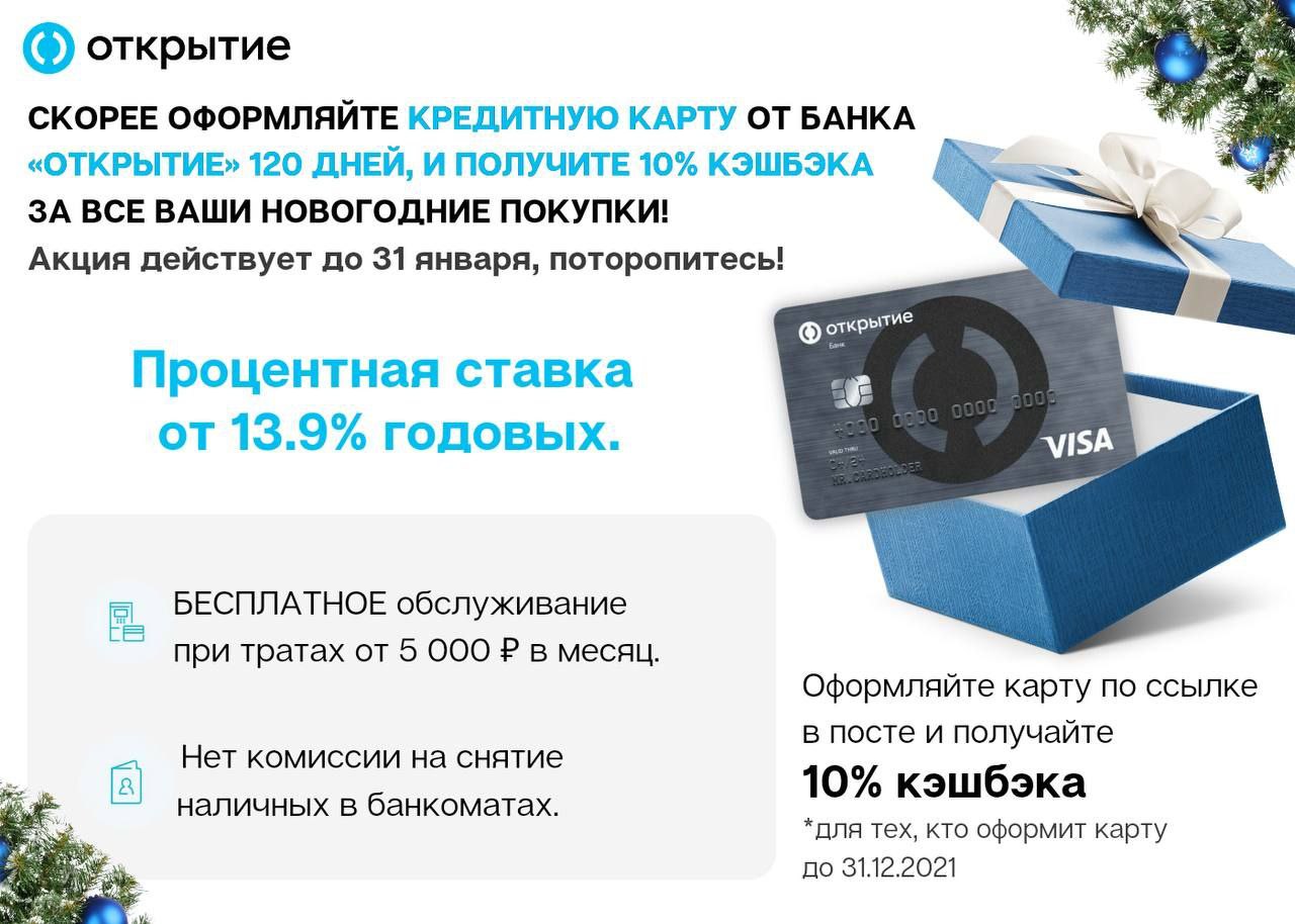 Кредитная карта Открытие 120 дней без % и платежей — отличный способ купить себе или своим близким крупный подарок на Новый год.