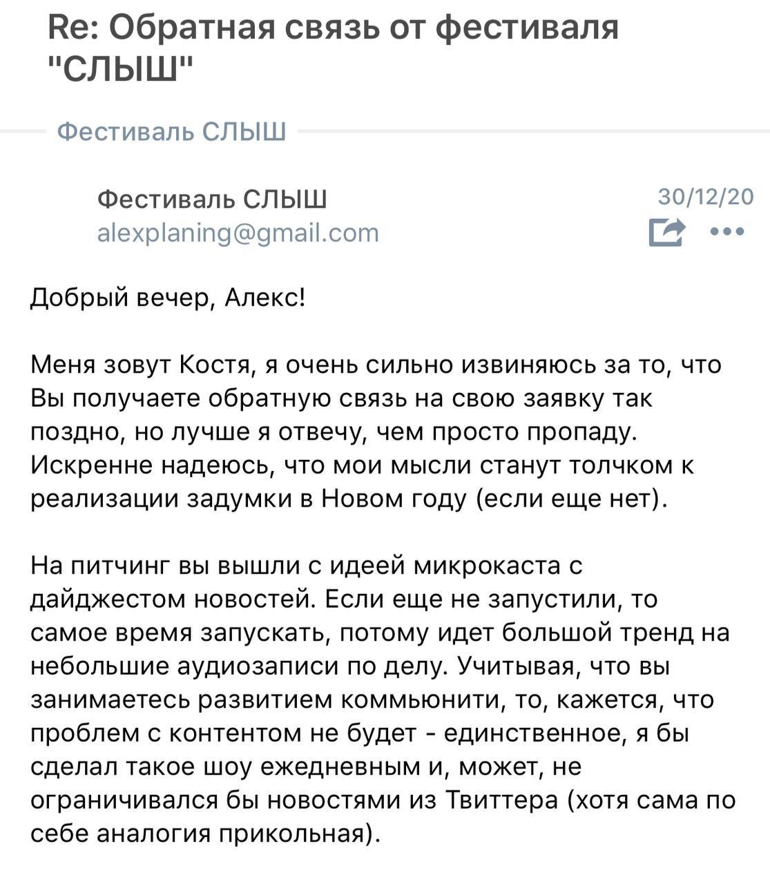 Но после письма, которое я получил от ребят с конкурса, куда мы отправляли подкаст летом, случился клик и вот его результаты.