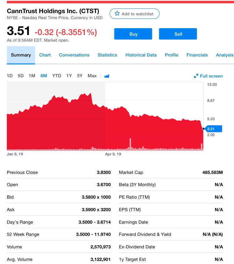 Акции CannTrust приняли еще одну волну негодавания и упали на 10%.
