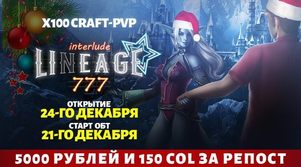 🎅Новогоднее Открытие LINEAGE777 x100 Craft-PvP назначено на 24 Декабря!