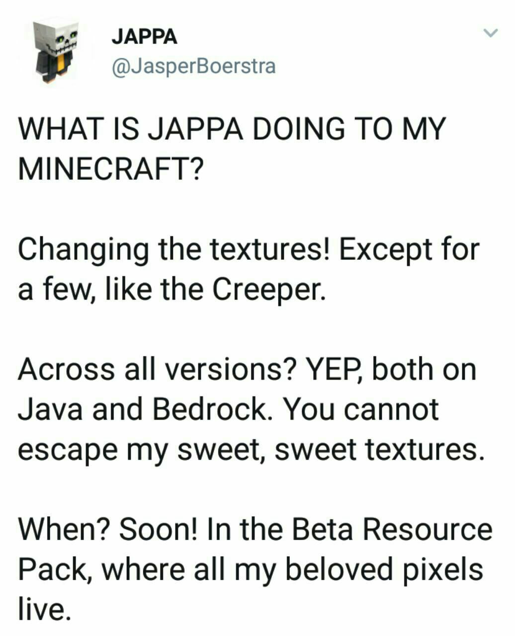 SI, sia per Java, sia per Bedrock. Tu non puoi sfuggire alle mie dolci, dolci texture.
