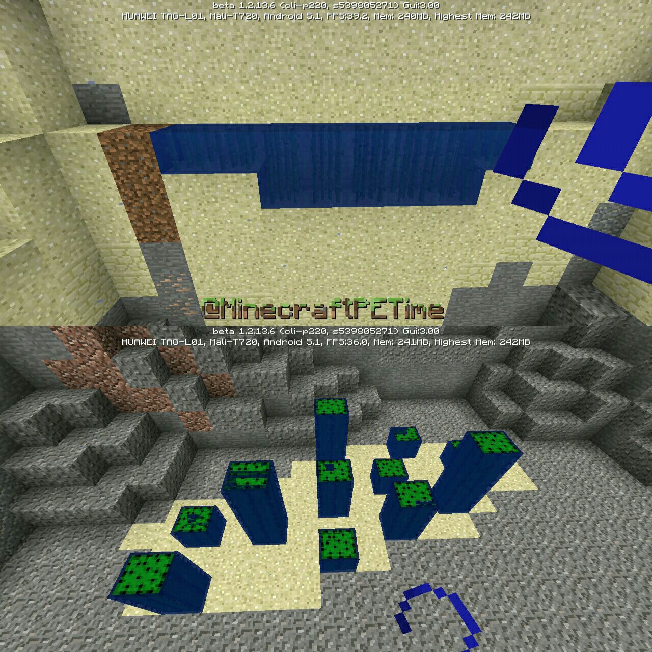 Solamente in questa versione é possibile piazzare i blocchi di cactus e di canne da zucchero sott'acqua, ma questo non é un bug, é un test per vedere come funzionano le piante acquatiche della 1.3 (alghe, erba marina ecc.) quando stanno sott'acqua!