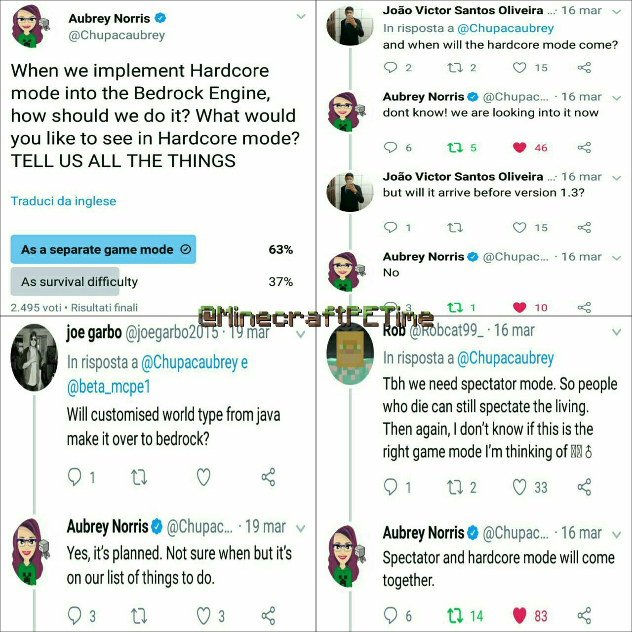 - Con tutta sincerità noi abbiamo bisogno della modalità spettatore. Così le persone che muoiono (nei minigame dei server) possono ancora fare da spettatori guardando i sopravvissuti nella partita. Poi non so se questa sia la giusta modalità di gioco a cui sto pensando.