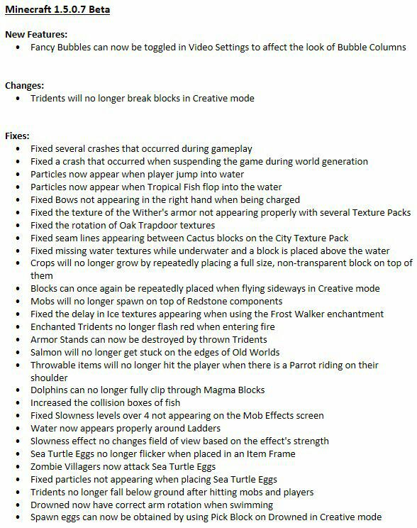 📋 Changelog di Minecraft 1.5.0.7