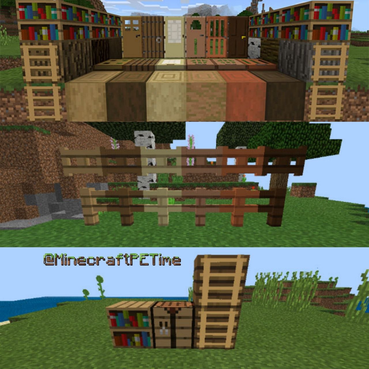 Questo pacchetto Texture modifica la maggior parte dei blocchi relativi al legno nel gioco per renderli più puliti e semplicistici.