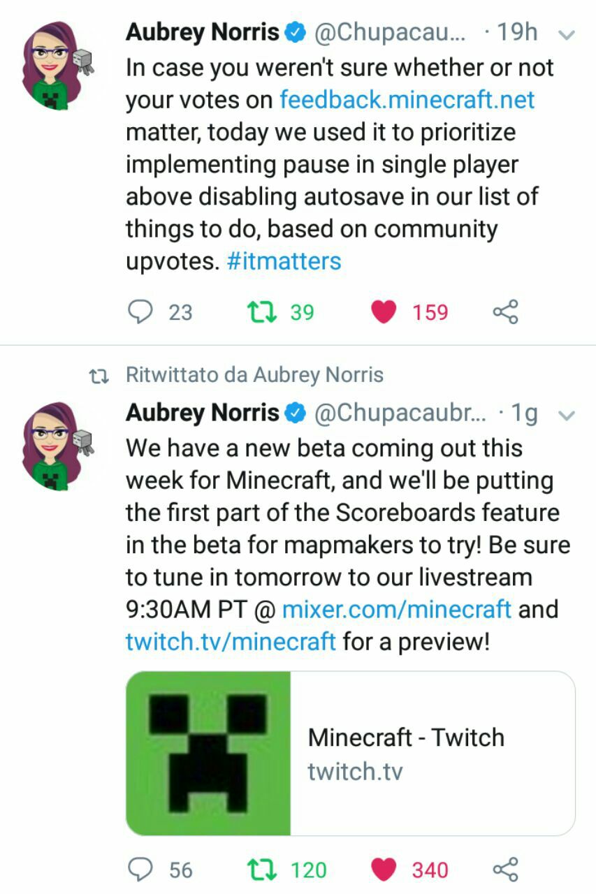 É stato confermato dalla sviluppatrice Aubrey Norris che questa settimana é in arrivo la prossima beta e conterrà la prima parte del tabellone dei punti utilizzato nelle mappe e nei server! Alcuni manager della community di Minecraft hanno anche fatto una diretta su Twitch a riguardo.