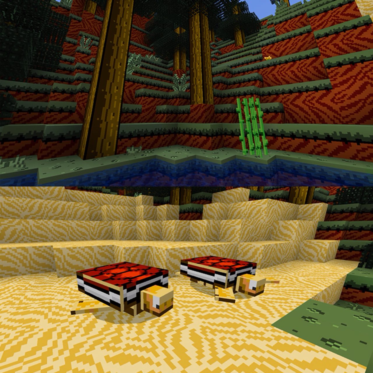 • Il bambù può ora essere trovato mentre si pesca nella giungla e apparirà in alcuni bauli. La generazione naturale nel mondo arriverà in un aggiornamento futuro